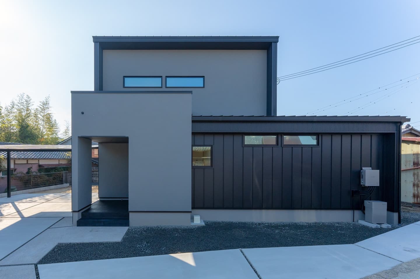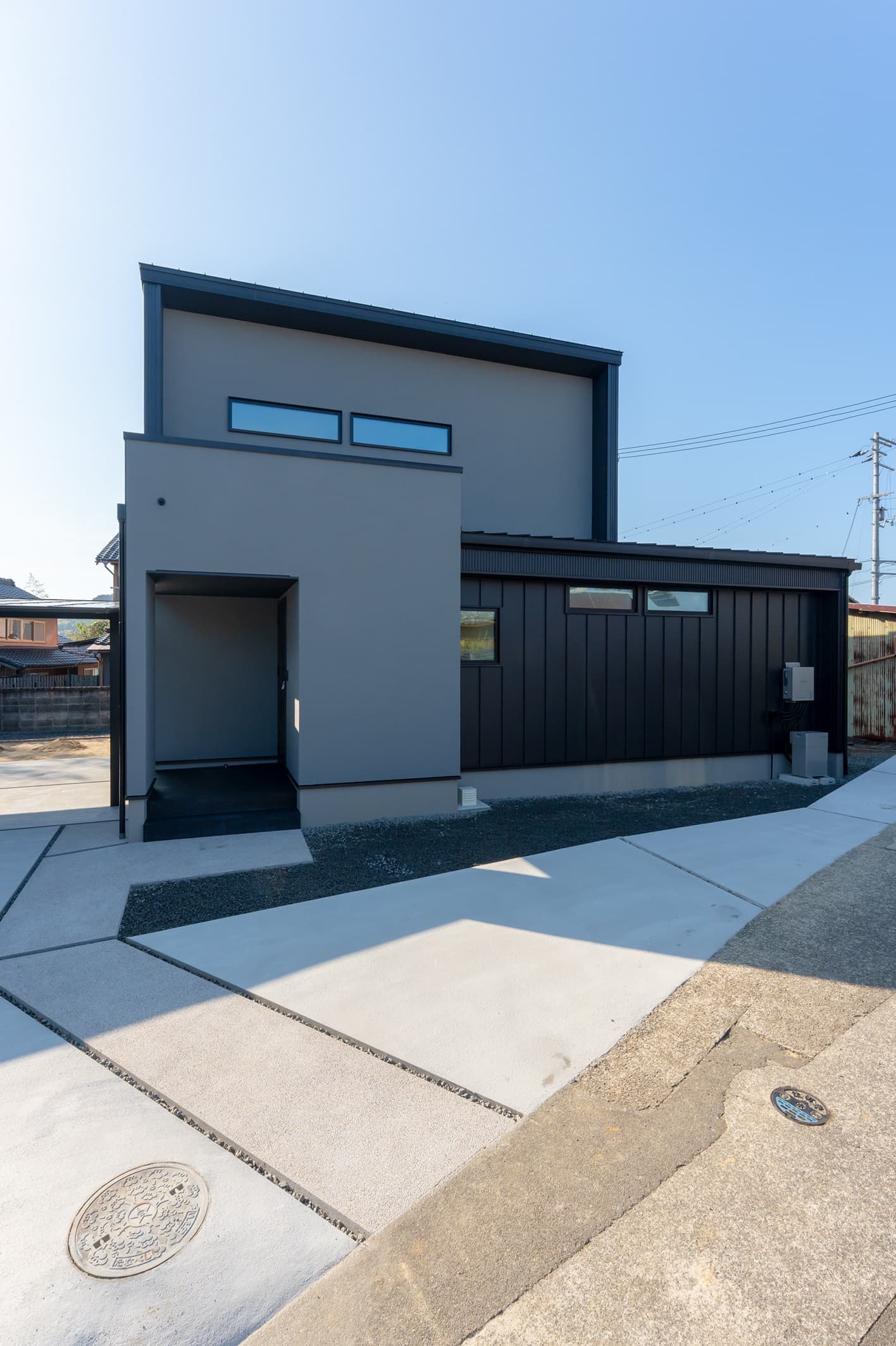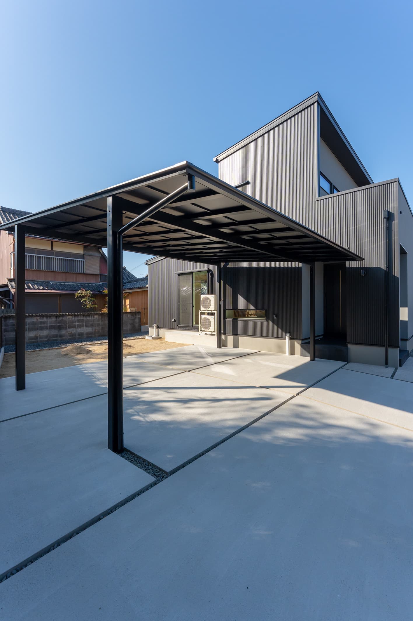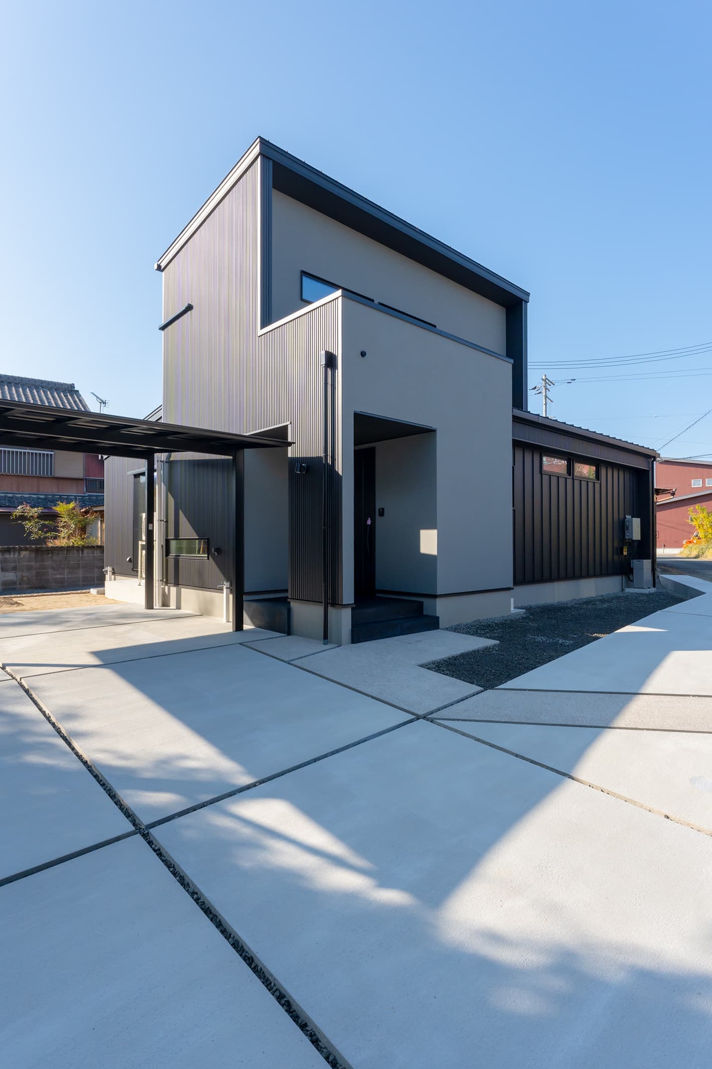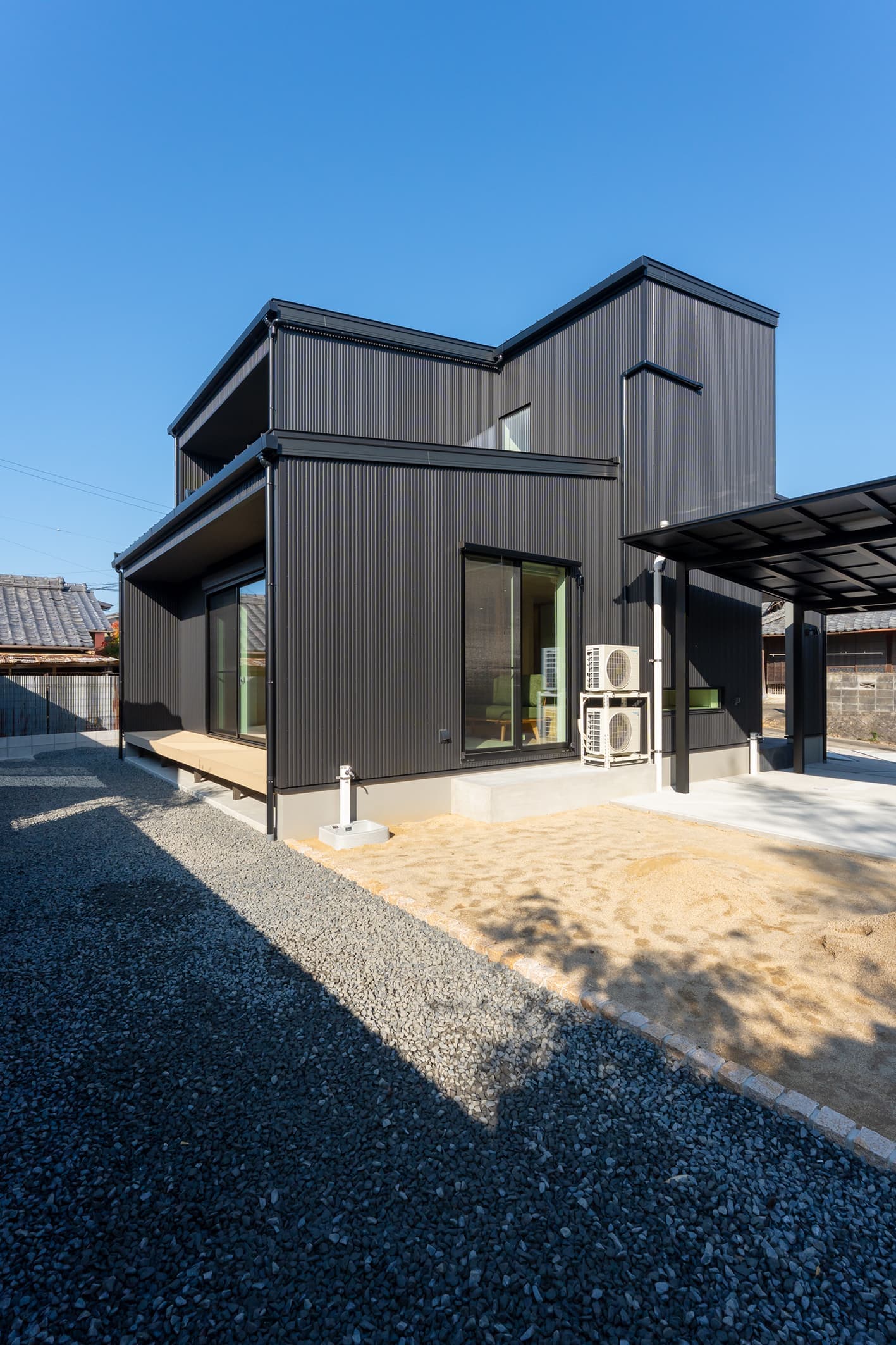 主なスペック 延床面積 32.30坪 外壁 ガルバリウム鋼板 × 塗り壁(ジョリパット) UA値 0.39 w/㎡K C値 0.15 ㎠/㎡ 耐震等級3(認定取得) 太陽光発電搭載 公的認証 BELS取得 ZEH対応