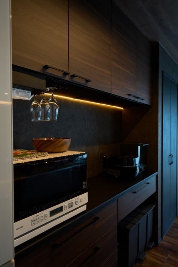 他にもキッチンパネルやカップボードの天板にリメイクシートを貼ったり、換気システムの排気口を塗ったりとか、全部妻がしています。(旦那さま)