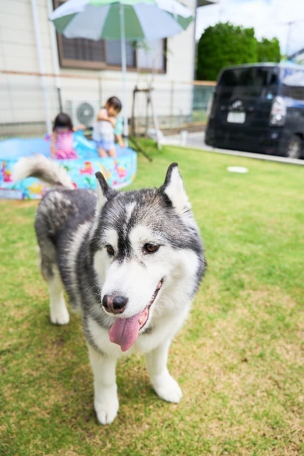 Sさまご家族はご夫婦と可愛い3姉妹、そしてシベリアンハスキーのさくらちゃんと一緒にお住まいいただいております。