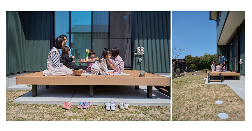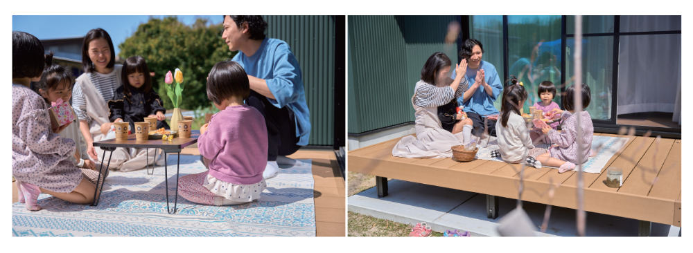 また、掃き出し窓から出入りできるウッドデッキでは、私と子どもがおやつを食べていると近所の子どもたちが集まってくることもあって。